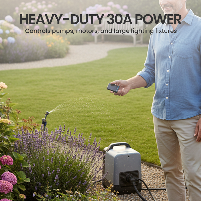 30 A HÖG EFFEKTKAPACITET – Stöder apparater med hög effekt upp till 30 A, vilket gör den idealisk för styrning av vattenpumpar, motorer och stora belysningsarmaturer. Lämplig för en rad olika scenarier, inklusive bostäder, kommersiella och industriella miljöer.