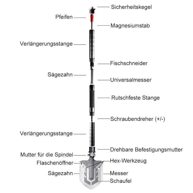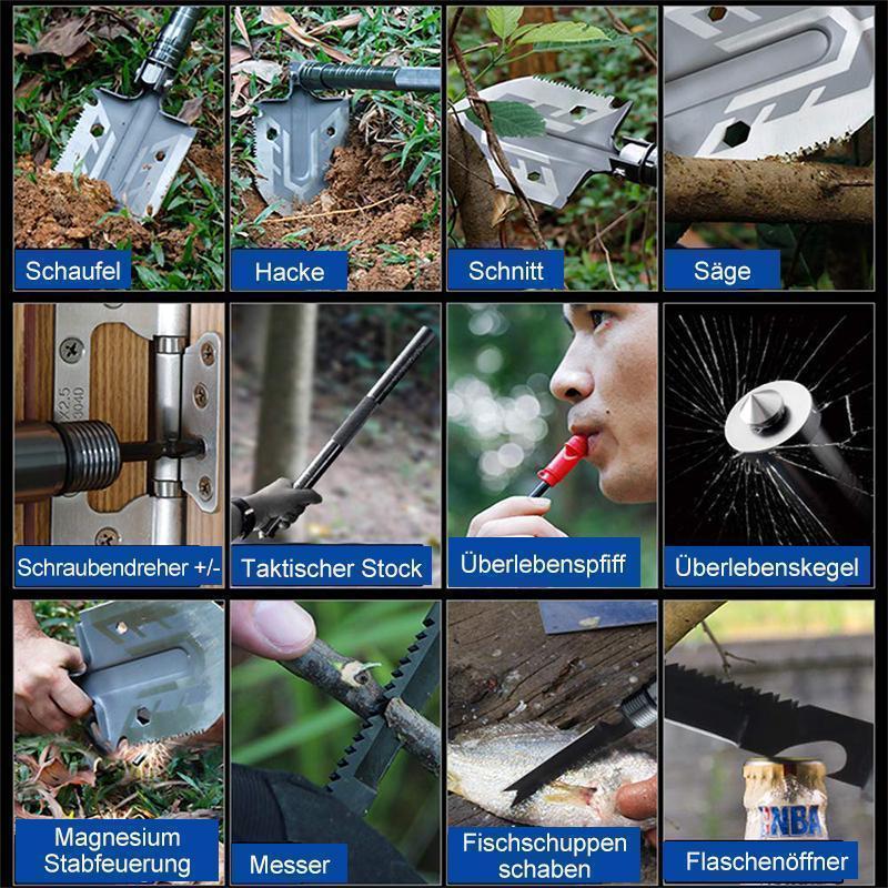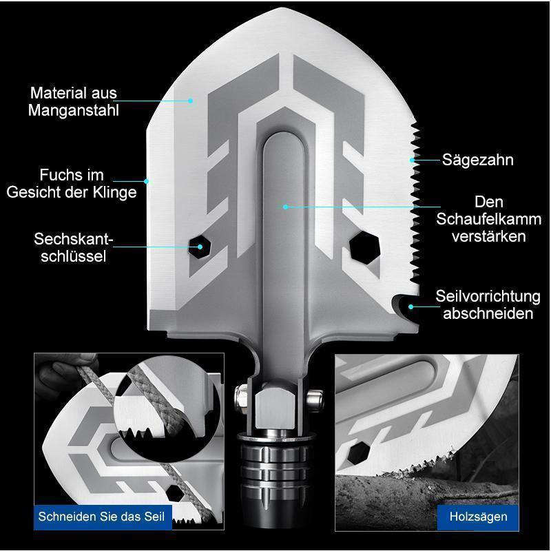 1 x Bärbar militär hopfällbar multifunktionsspade för utomhusbruk