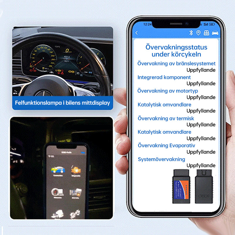 TRÅDLÖS BLUETOOTH-ANSUTNING: Anslut enkelt fel-detektorn till din smartphone eller surfplatta via Bluetooth, vilket ger dig tillgång till realtidsdiagnostik och möjlighet att utföra snabbtester utan behov av komplicerad kabeldragning eller extra enheter.