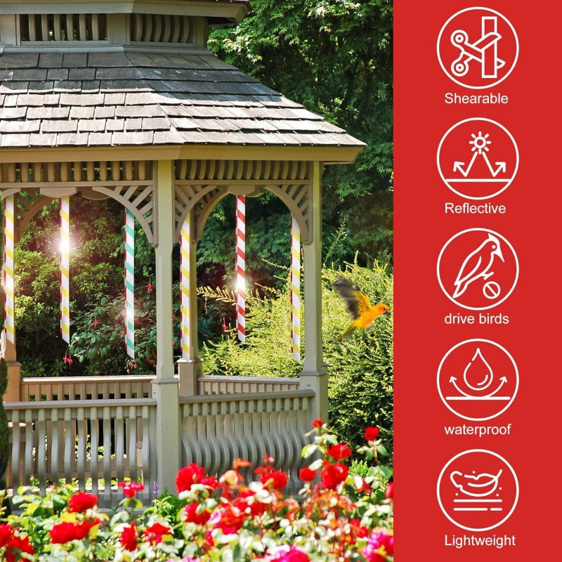 LJUSREFLEKTERANDE YTA – Den glänsande, reflekterande ytan blinkar i solljuset och skapar en visuell distraktion som skrämmer bort fåglar, vilket gör den till en effektiv lösning för fågelbekämpning.