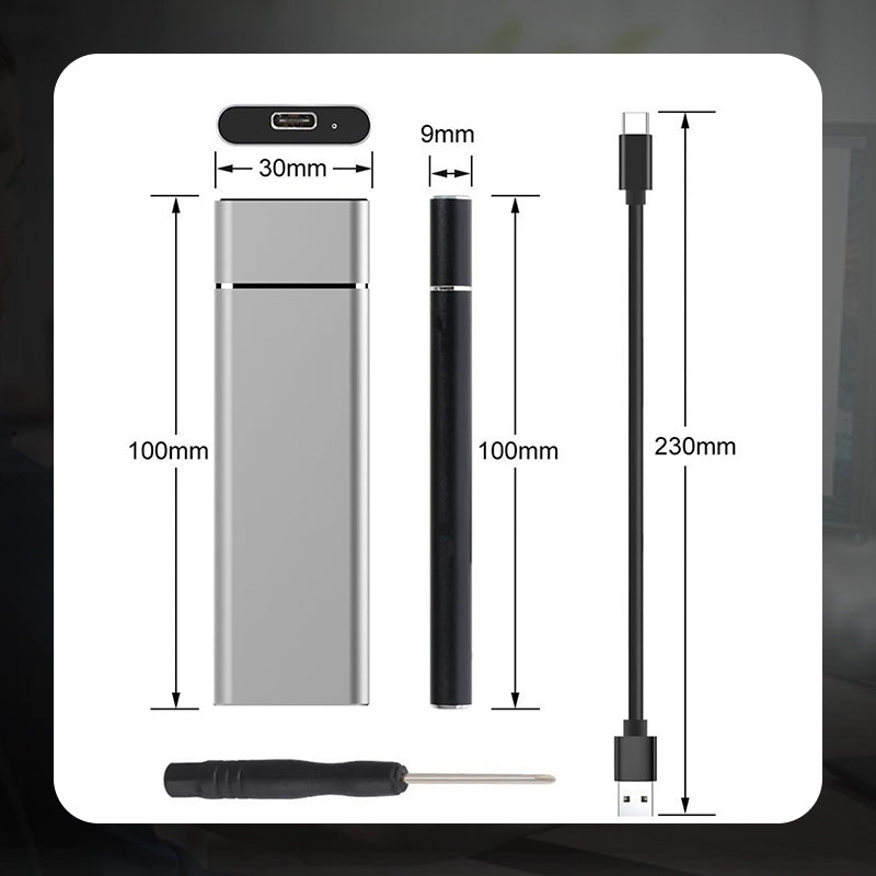 Bärbar extern hårddisk. Plug and play för Windows, PC och Mac.