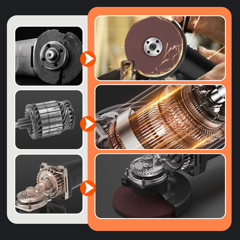 HÖGEFFEKTIV MOTOR I REN KOPPAR FÖR FÖRBÄTTRAD HÅLLBARHET: Denna kvarn är utrustad med en robust motor i ren koppar och ger jämn effekt samtidigt som den motstår överhettning. Motorns avancerade design inkluderar överbelastningsskydd, vilket säkerställer långvarig prestanda även vid intensiv användning på tuffa material som metall och sten.