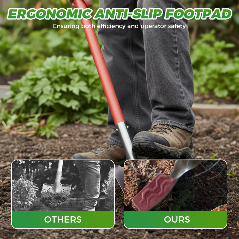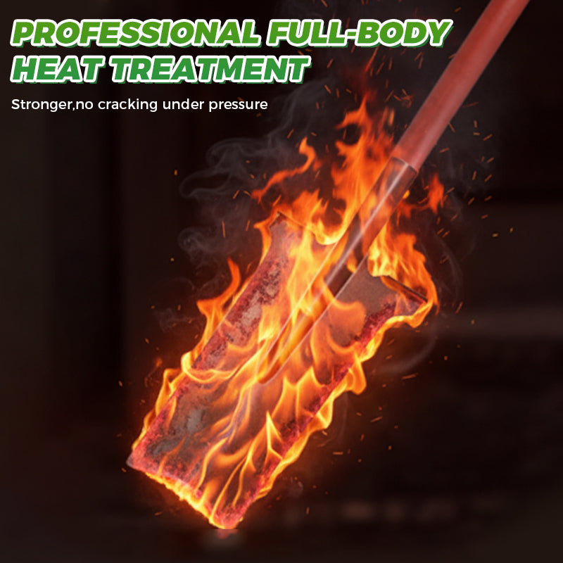 PROFESSIONELL VÄRMEBEHANDLING AV HELA KROPPEN: Tillverkad i ett stycke av smitt stål och helt värmebehandlad för maximal styrka. Denna process förbättrar hållbarheten och stötdämpningen, vilket säkerställer att spaden tål intensivt tryck utan att spricka eller böjas.