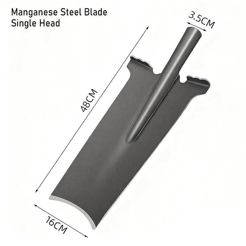 FÖRSTÄRKT RIBBAD STRUKTUR: Skovelbladet har integrerade strukturella ribbor som förhindrar böjning eller skevhet under belastning. Denna förstärkning förbättrar styvheten, särskilt vid djup grävning eller bändning, vilket ökar säkerheten och förlänger verktygets livslängd vid tung användning.