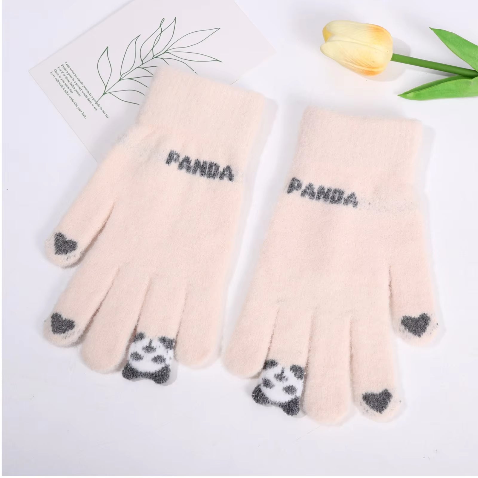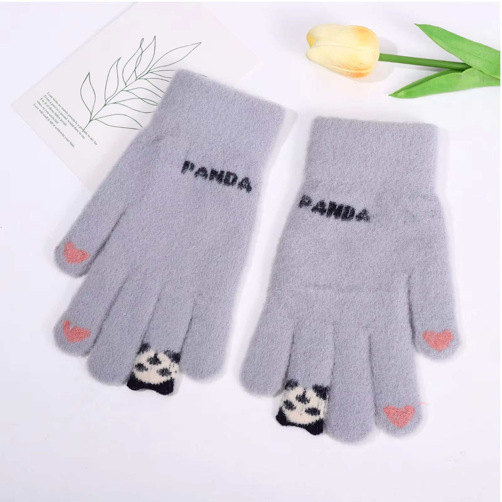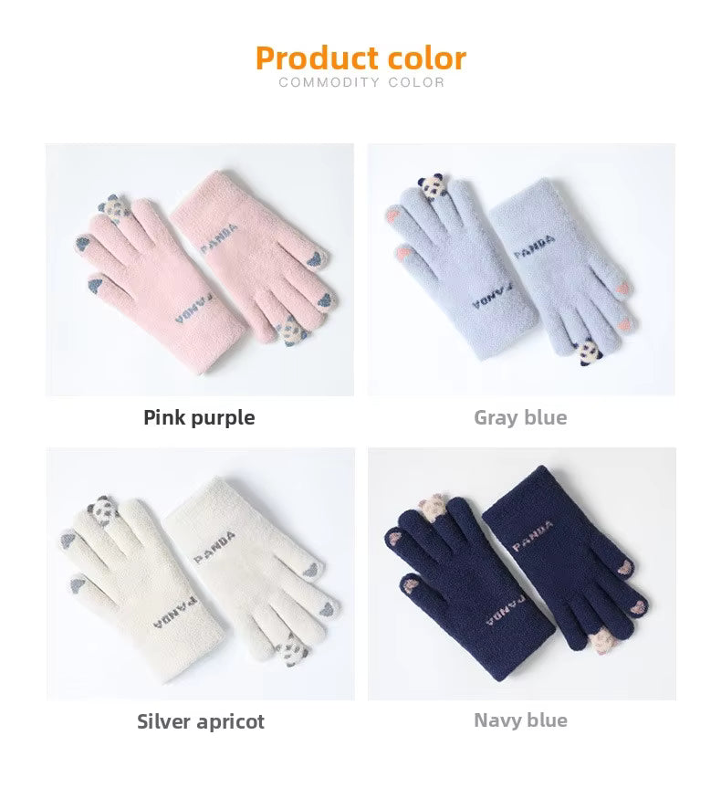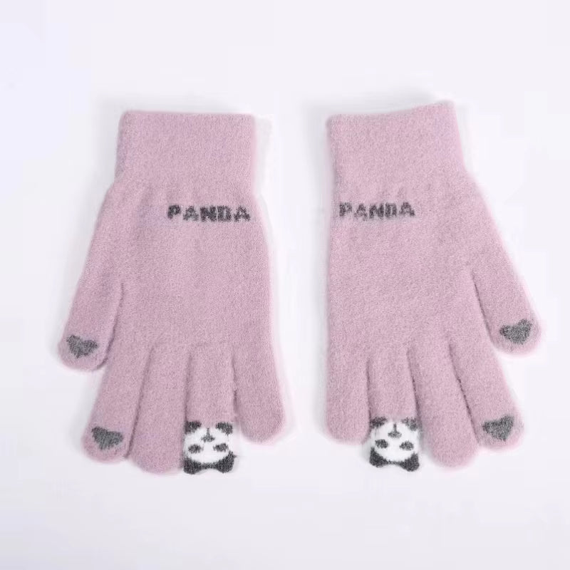 đŒSöta panda-vinterhandskar för mĂ€n och kvinnor i varm ull med delade fingrar, touchscreen-kompatibla och stickade