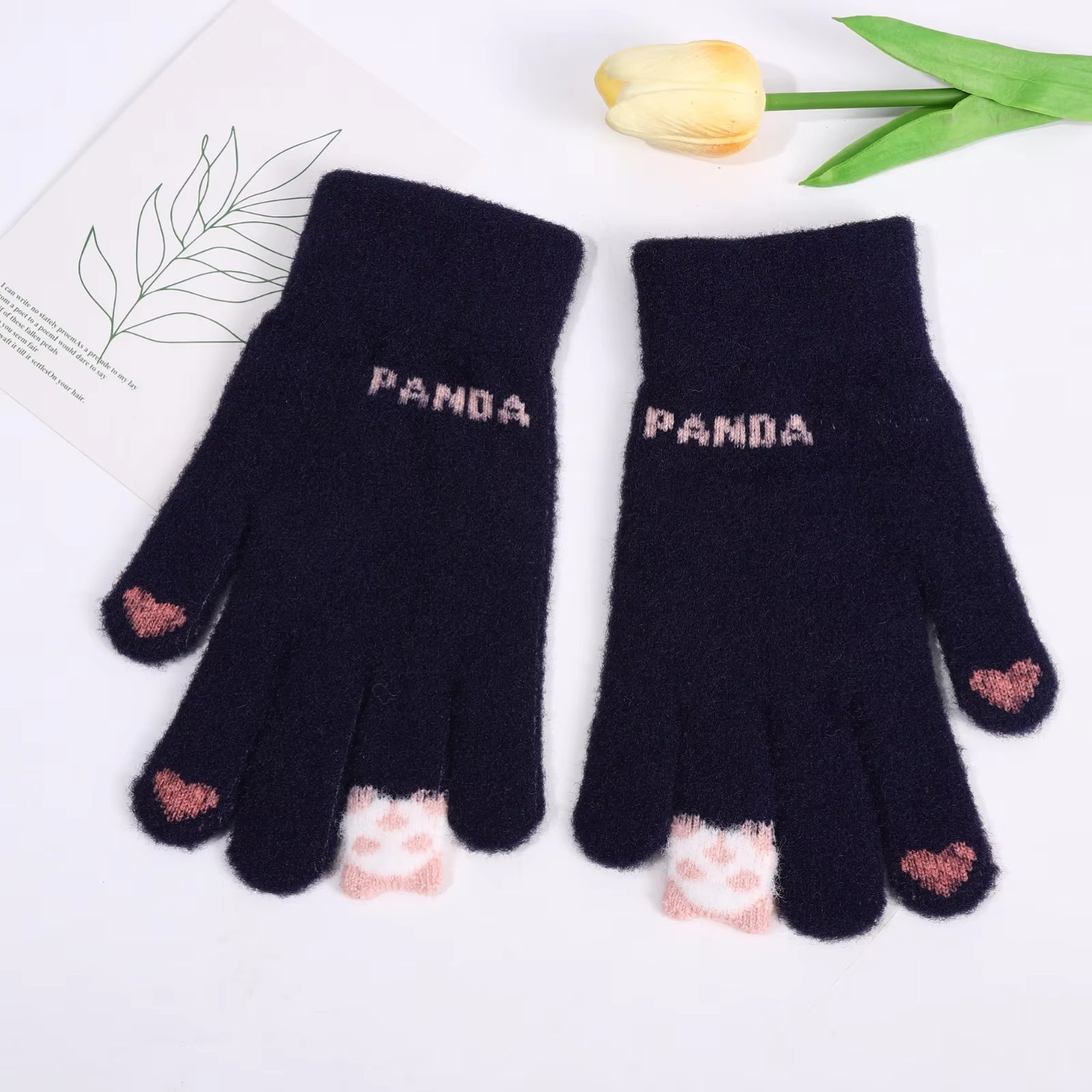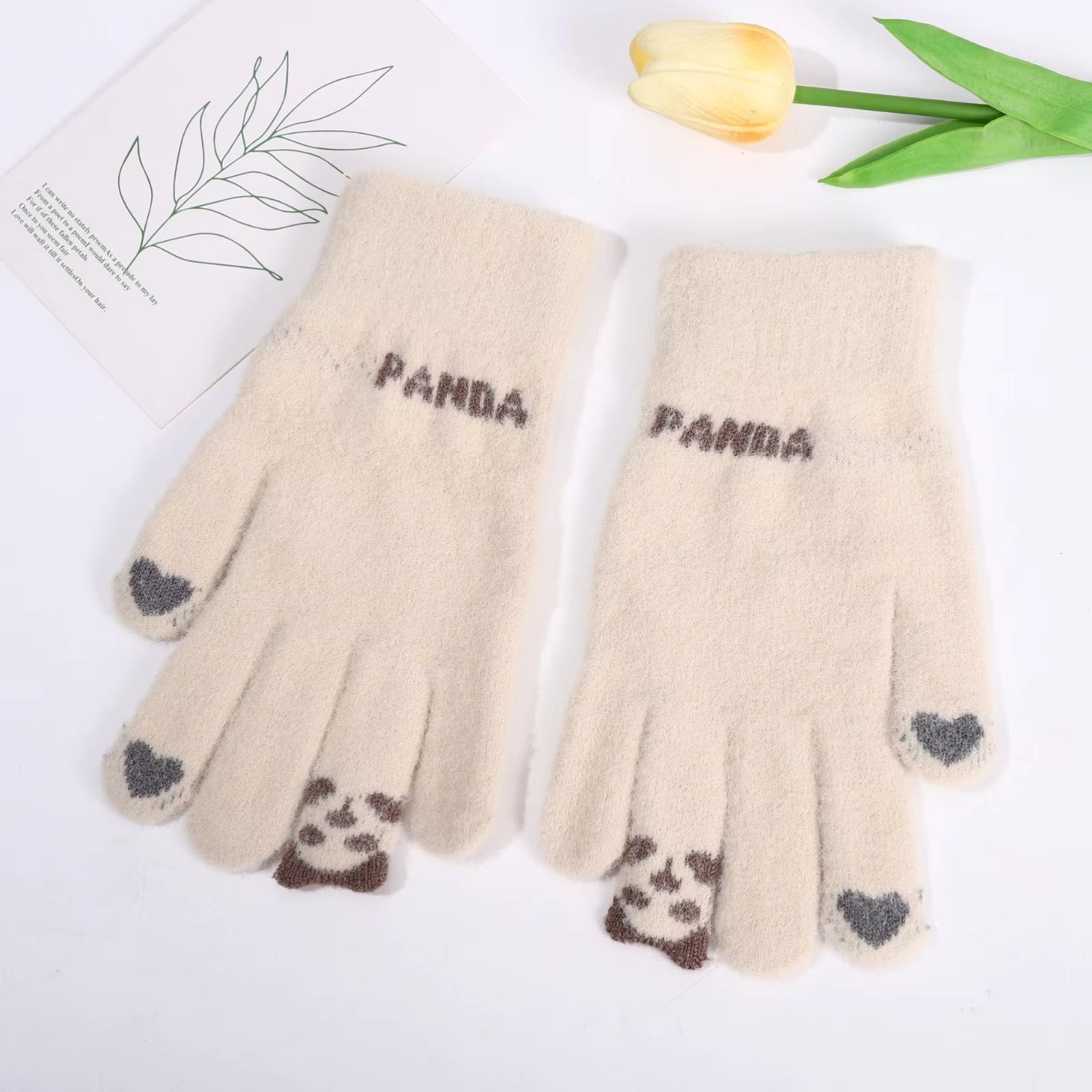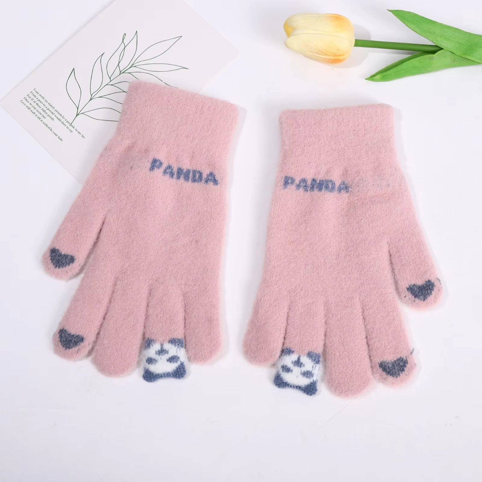 đŒSöta panda-vinterhandskar för mĂ€n och kvinnor i varm ull med delade fingrar, touchscreen-kompatibla och stickade