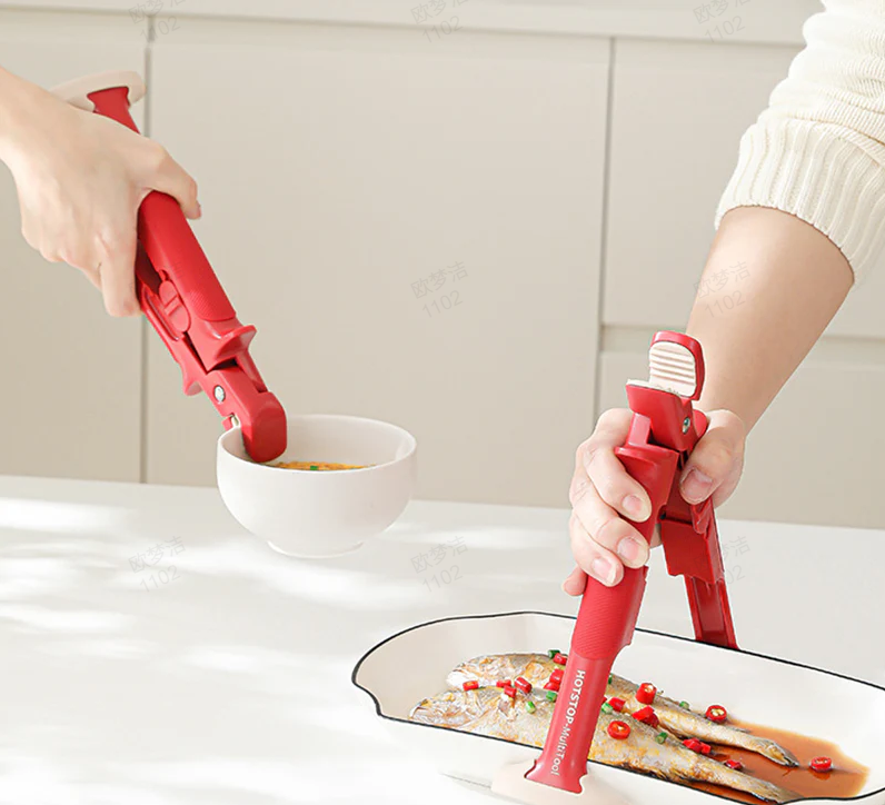 SÄKER OCH VÄRMEBESTÄNDIG: 2-i-1 dubbelhuvad användning, utformad för att klämma fast skålar på ovansidan och tallrikar på undersidan, bränner inte händerna och garanterar säker köksanvändning.