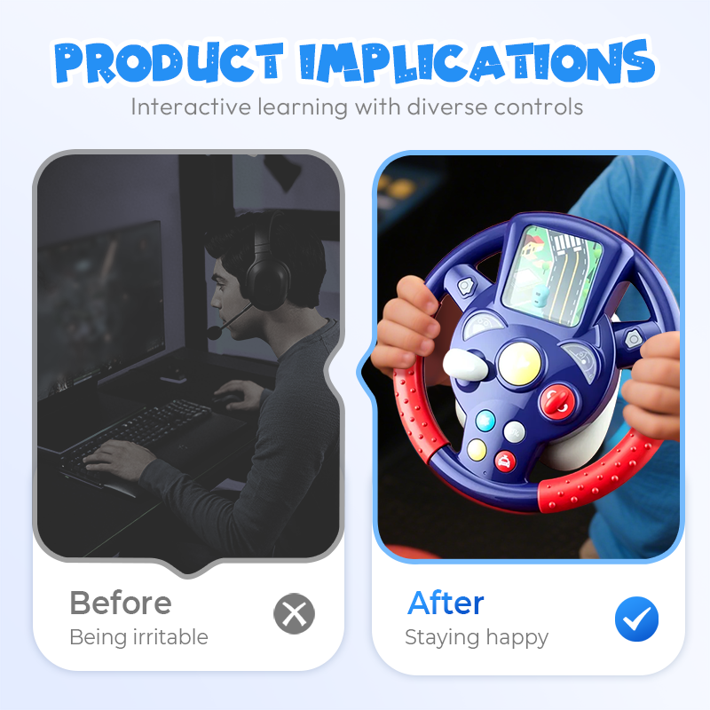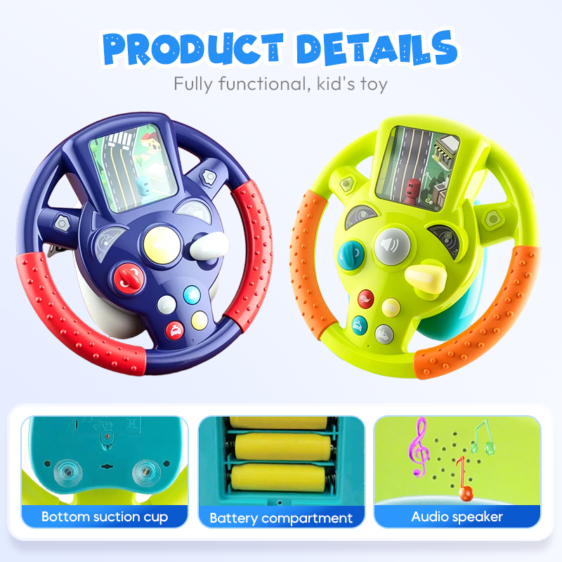 STABIL SUGKUPPSDESIGN-Finns med en stark, stabil sugkopp som ser till att ratten sitter säkert på plats under användning. Denna design minimerar risken för olyckor och distraktioner, så att barnen kan fokusera helt på den roliga, säkra upplevelsen utan att oroa sig för att hjulet rör sig oväntat.