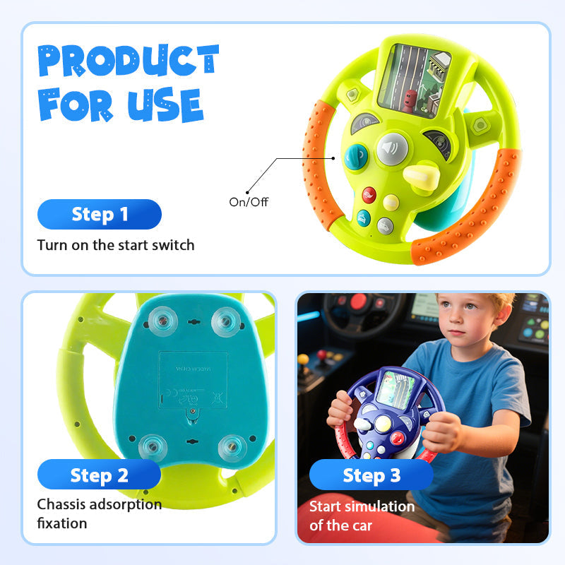 BÄRBAR OCH LÄTT ATT ANVÄNDA -Drivs av batterier och är lätt att transportera, Mini Steering Magic Wheel är lätt och redo för lek när som helst, var som helst. Oavsett om du är hemma eller på språng kan barnen njuta av sin egen körupplevelse, vilket gör det till den perfekta följeslagaren för resor eller fritid.