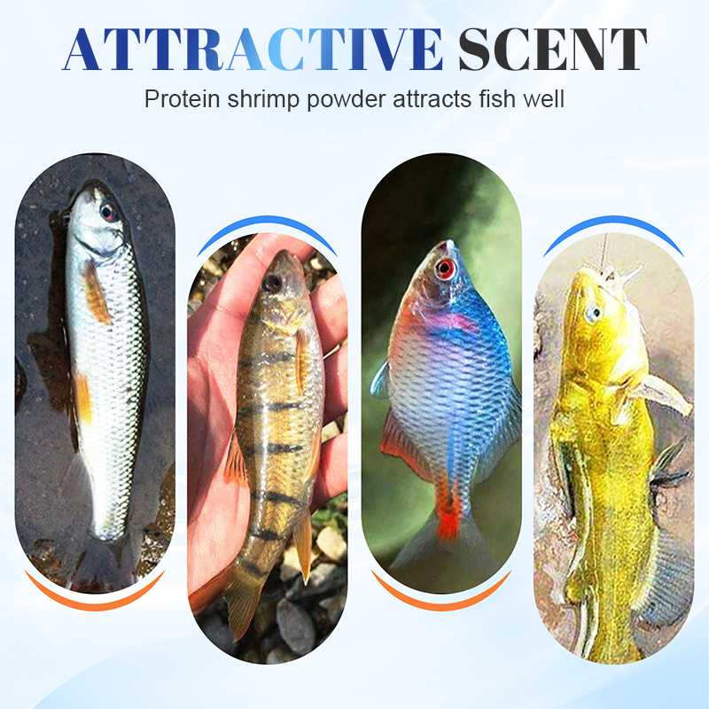 RIK PÅ PROTEIN OCH RÄKPULVER: Berikad med proteinrikt räkspulver och en stark doft som effektivt lockar fisk genom att efterlikna naturliga byten och stimulera deras aptit.