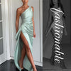 Passar dina kurvor Satin One Shoulder Drape Slit Maxi Dres