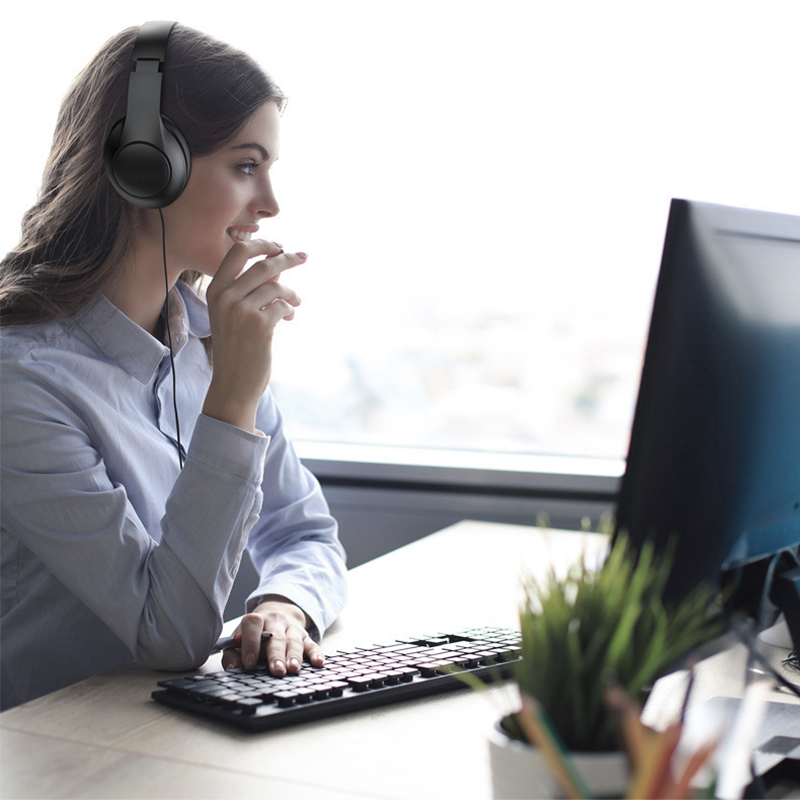 FÄLLBAR OCH LÄTT ATT FÖRVARA: Den hopfällbara huvudbanddesignen gör dessa hörlurar resvänliga och platsbesparande. Fäll bara ihop dem och stoppa dem i din väska när de inte används.