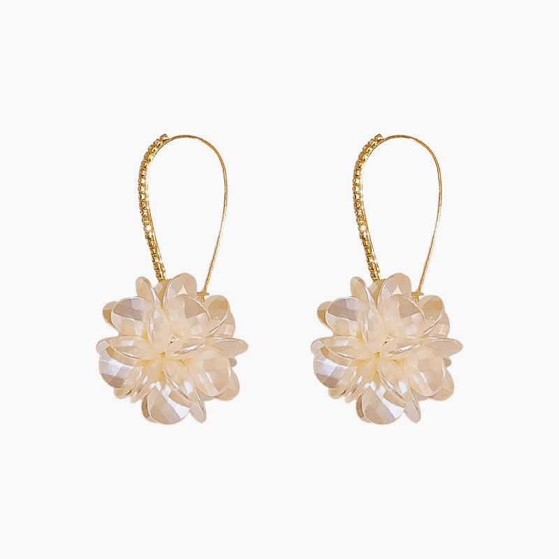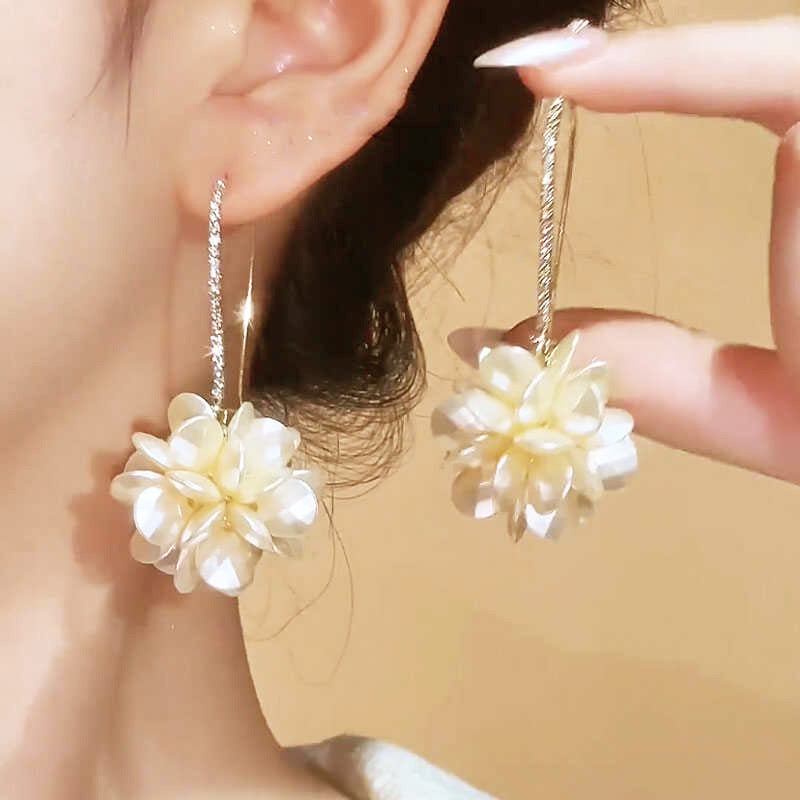 UTMÄRKT PÄRL-VIT BLOMSTERDESIGN: Dessa örhängen har en vackert utformad rund blomsterboll som utstrålar tidlös elegans och sofistikering. Perfekta för att ge en touch av förfinad charm till alla outfits.