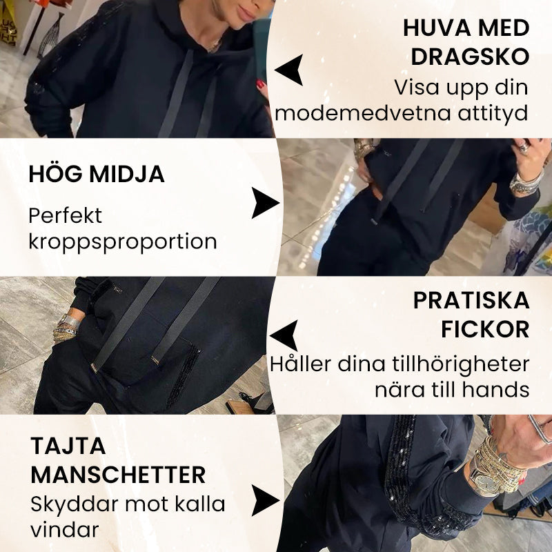 đ·BegrĂ€nsat tids erbjudandeâš KvinnotvĂ„delad uppsĂ€ttning med huva och dragsko samt lĂ„ngbyxor