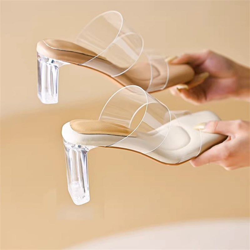 ELEGANT TRANSPARENT DESIGN: Dessa sandaler har en elegant transparent rem och ger en modern, elegant look som kan bäras med en mängd olika outfits, perfekt för både avslappnade och formella tillfällen.